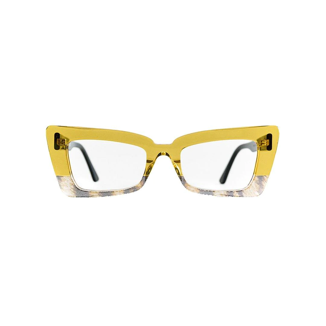Montatura da vista di forma rettangolare rivisitata in chiave moderna, perfetto per chi ama far notare l’occhiale che indossa.