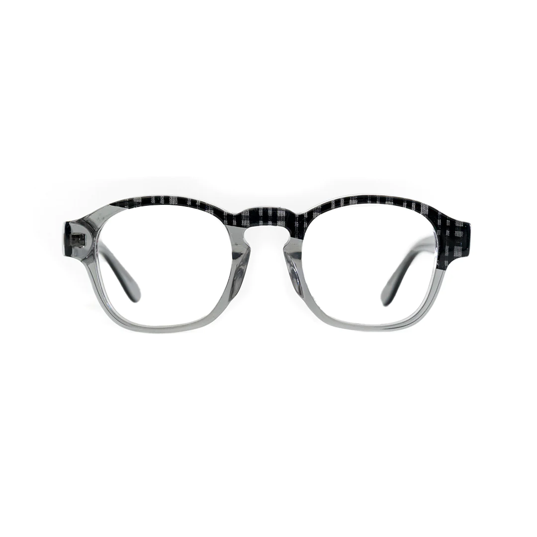Montatura da vista pantos squadrata; forma iconica degli anni ’80 in grado di adattarsi perfettamente a diverse forme di viso.