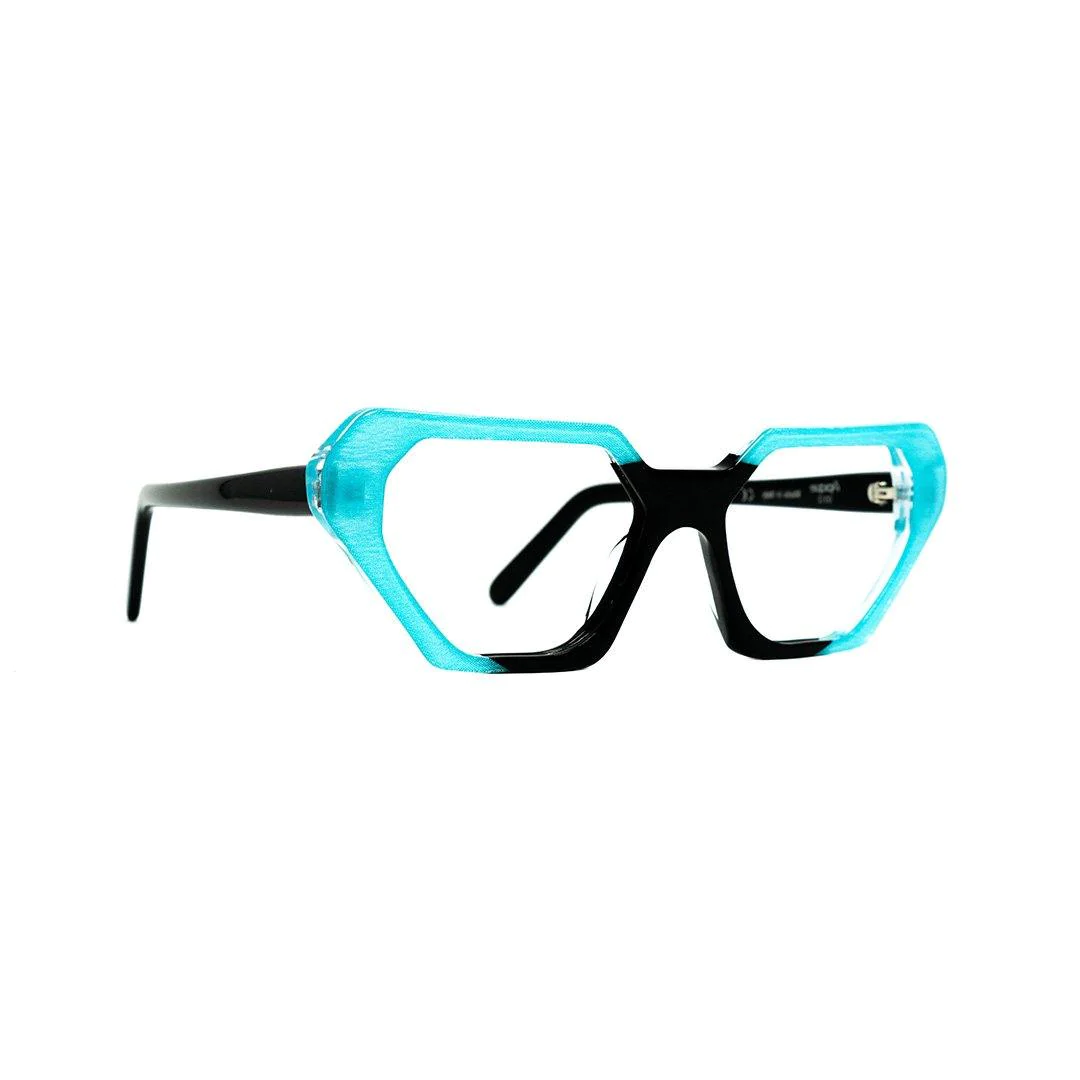 Montatura da vista caratterizzata da profili geometrici che ricordano l’iconico cat-eye; design deciso e femminile.